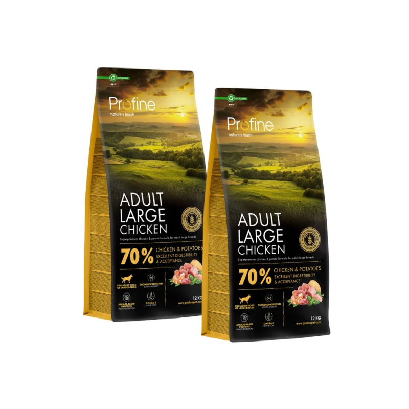Majoritairement composée de poulet et de légumes, cette recette de croquettes est à la fois appétente et riche en bienfaits pour votre chien de grande race. Elle est constituée de chondroprotecteurs et de minéraux qui favorisent la mobilité de votre chien en soutenant ses os et ses articulations.