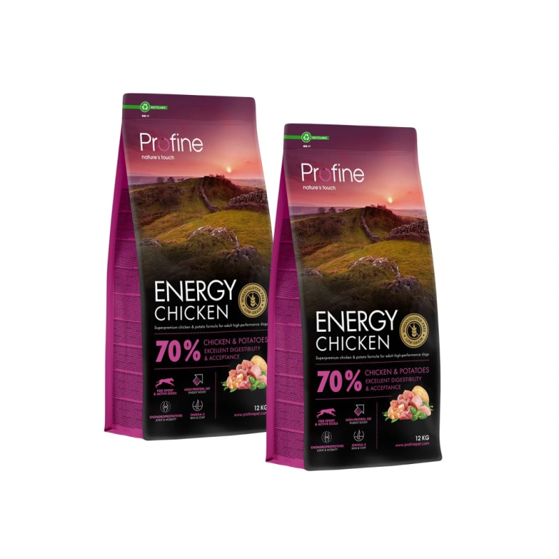 poulet 50 % (viandes de poulet séchées 25 %, viandes de poulet moulues déshydratées 25 %), graisse de poulet (conservée par un mélange de tocophérols, source de vitamine E) (13 %), maïs, pommes de terre (5 %), levure de bière, pommes séchées, foie de poulet hydrolysé (2 %), crevettes (1,5 %), huile de saumon (1 %), algues marines (0,5 %), sulfate de glucosamine (0,02 %), racines de chicorée (source de manno-oligosaccharides 0,018 %), mélange d‘herbes aromatiques (fenouil, basilic, sauge 0,018 %), fructo-oligosaccharides(0,012 %), extrait de Yucca schidigera (0,01 %), sulfate de chondroïtine (0,012 %).