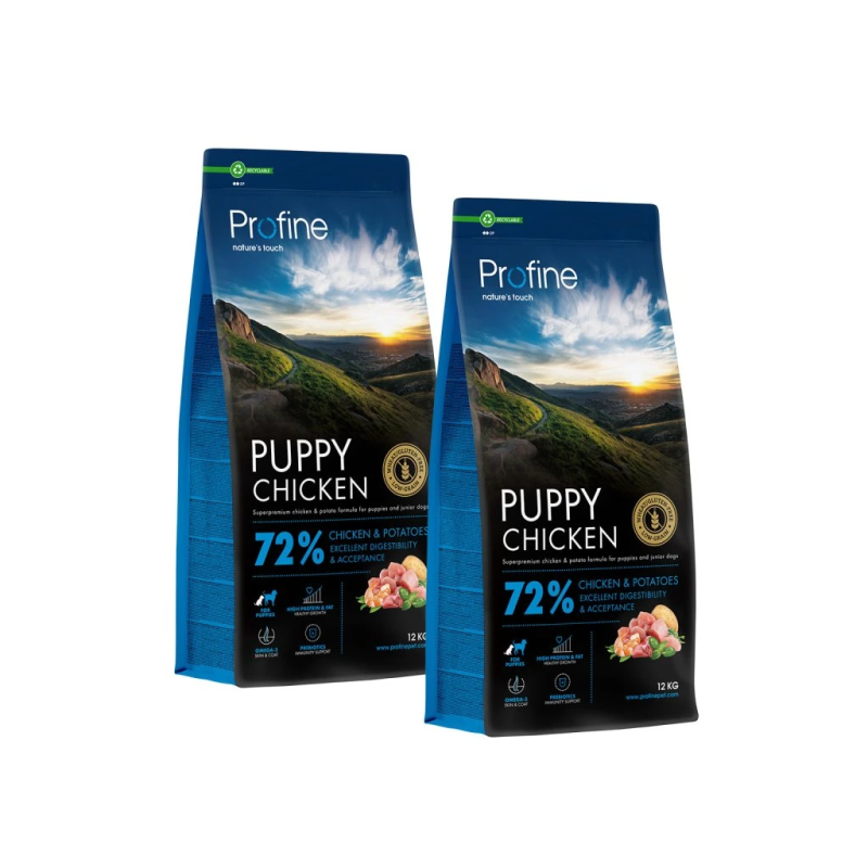 Composition : poulet 45% (viandes de poulet séchées 25 %, viandes de poulet moulues déshydratées 20 %), maïs, graisse de poulet (conservée par un mélange de tocophérols, source de vitamine E) (12 %), pommes de terre (11 %), pommes séchées, levure de bière, foie de poulet hydrolysé (2 %), crevettes (1,5 %), huile de saumon (1 %), algues marines (0,5 %), sulfate de glucosamine (0,025 %), racines de chicorée (source de manno-oligosaccharides 0,02 %), mélange d‘herbes aromatiques (fenouil, basilic, sauge 0,02 %), fructo-oligosaccharides (0,015 %), extrait de Yucca schidigera (0,015 %), sulfate de chondroïtine (0,015 %).