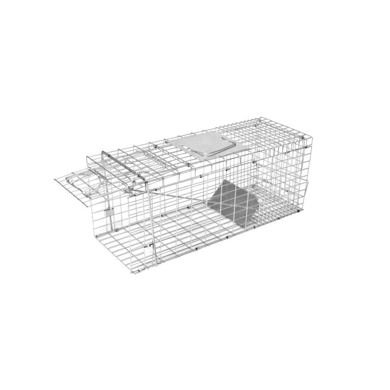 Piège rabattable robuste avec 1 entrée pour les petits animaux tels que les chats, rats, martres, lapins ou similaires : treillis de fil galvanisé et solide d’une grande longévité porte à guillotine avec déclenchement par passage et sécurité de porte intégrée avec poignée de transport rabattable Les pièges pour rongeurs doivent TOUJOURS être recouverts conformément aux exigences de conditionnalité ! Important : Placer à proximité des mangeoires, des tas de bois ou des granges et protéger de la lumière (ordonnance pour la protection des animaux). Veuillez respecter les réglementations légales relatives à la chasse !